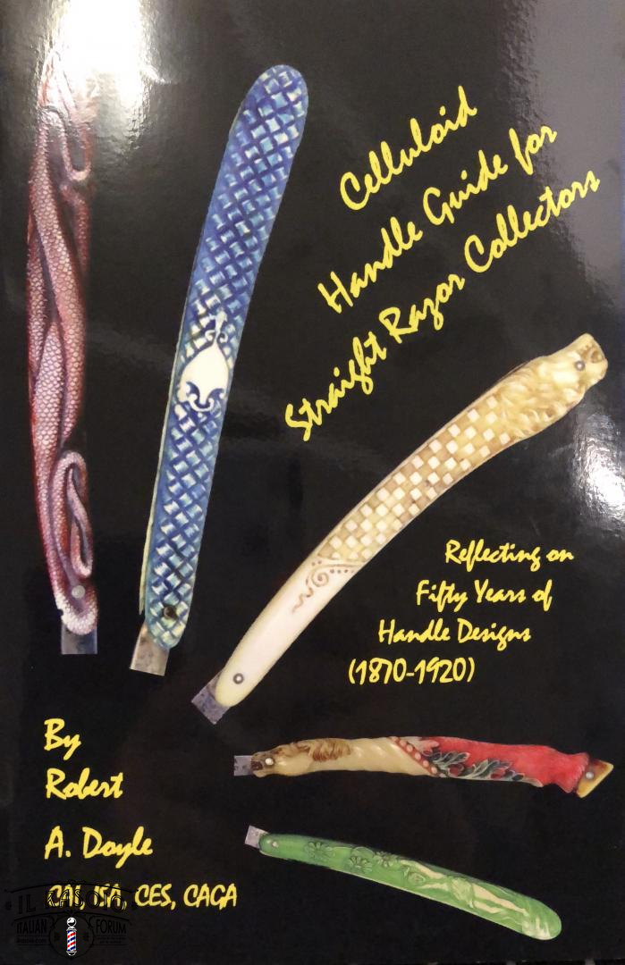 I rasoi di seguito presentati sono quindi il frutto di queste ricerche e li ho raggruppati per soggetto, indicando il marchio riportato ed il numero di riferimento dello splendido libro di Doyle sui manici in celluloide (se presente).I rasoi sono descritti da sinistra vs destra