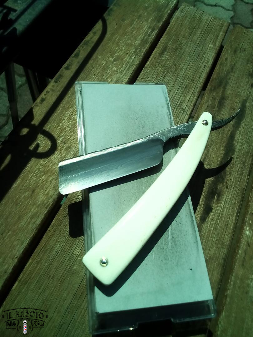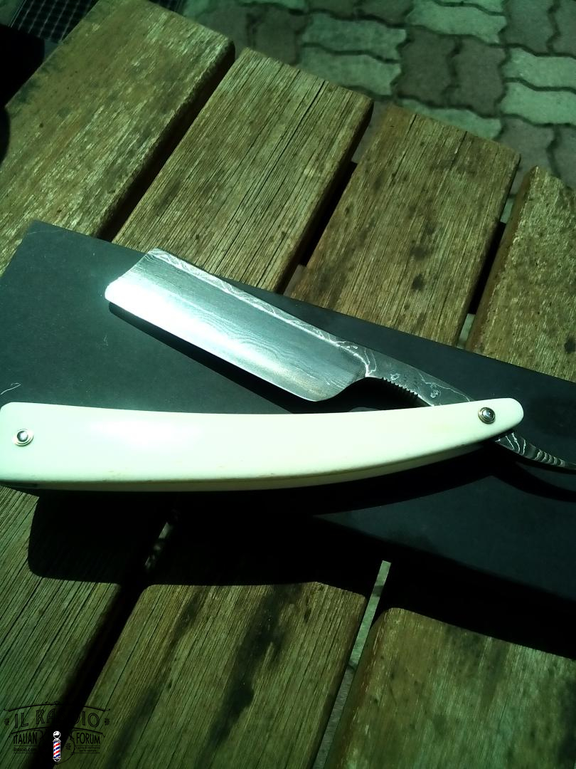 Bellissimo rasoio. Personalmente lo vedrei spiccare meglio con un manico scuro ma qui si entra nella discrezionalità. Quello che è indiscutibile, invece, è che state veramente facendo lavori eccelsi