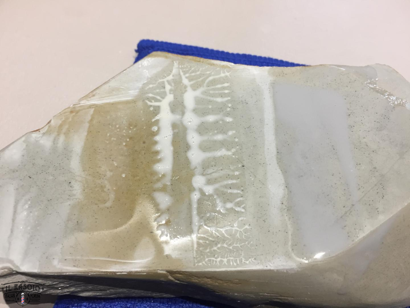 poi ho lasciato lo slurry prodotto dalla diamantata e su una parte asciutta della pietra base ho fatto lo slurry utilizzando la pietruzza, il risultato: