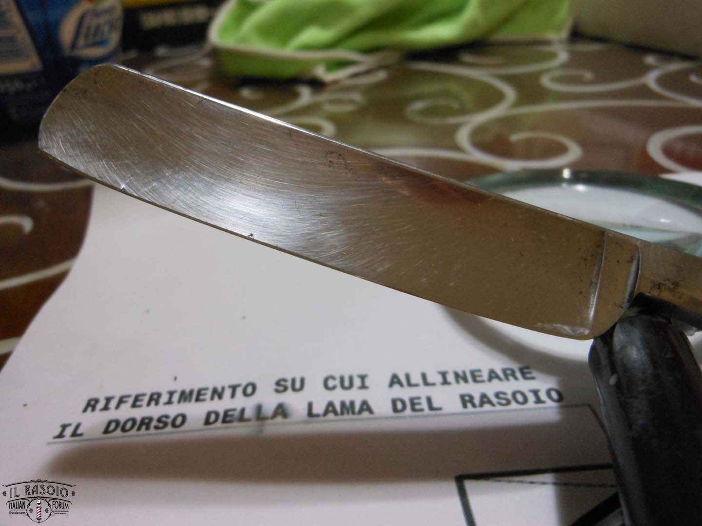 Come hai ben sperimentato il rasoio si è affilato fino a 3/4 partendo dal tallone dopodichè verso la punta il difetto aumenta sempre di più rendendo ad un certo punto impossibile il corretto appoggio sulla pietra.