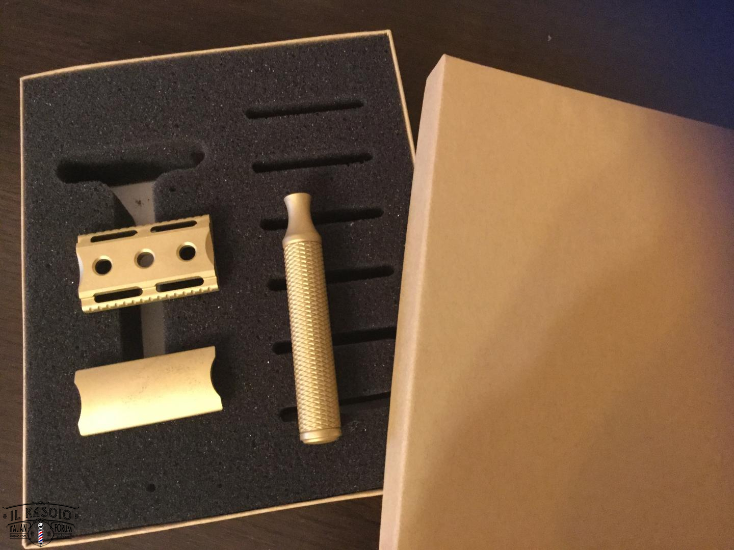 Come già altri in precedenza (cfr Colonial Razors), questo rasoio è in ottone non anodizzato e trattato solo con una leggera sabbiatura per dare una finitura opaca.