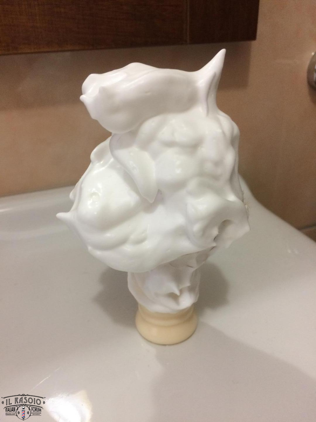 3. ed ecco a voi un corposo e copioso totem di schiuma: yogurt denso compatto e luccicante. Veramente bella, mi è venuto anche meglio che con la Proraso Verde: guardate l’altra mia scheda!