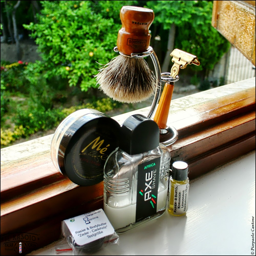 Meissner Tremonia Koriander & Lemograss Rasier Oil • Jabòn Mé Formùla2 Costa Dorada • Semogue 2013 LE Barbear Clà ssico 22x50x100mm Mistura #13/100 • Schick 1940 Injector E3 • Personna PTFE Injector #12 • Meissner Tremonia Zeder & Cadeholz Butter • Axe Africa AS Lotion