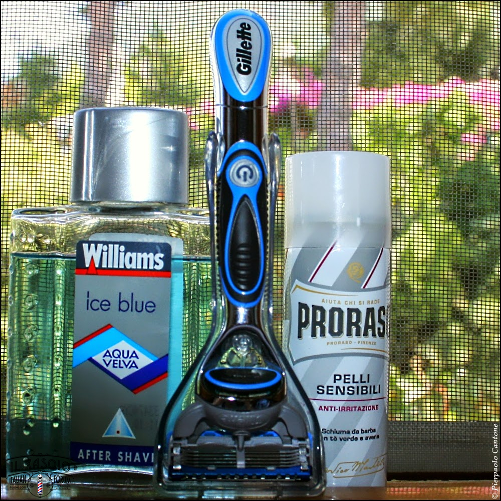 Proraso Bianca Anti Irritazione Schiuma • Gillette Fusion ProGlide Power Multi-5 • Gillette Fusion ProGlide Power GFPGP5 #141 • Williams Aqua Velva Ice Blue