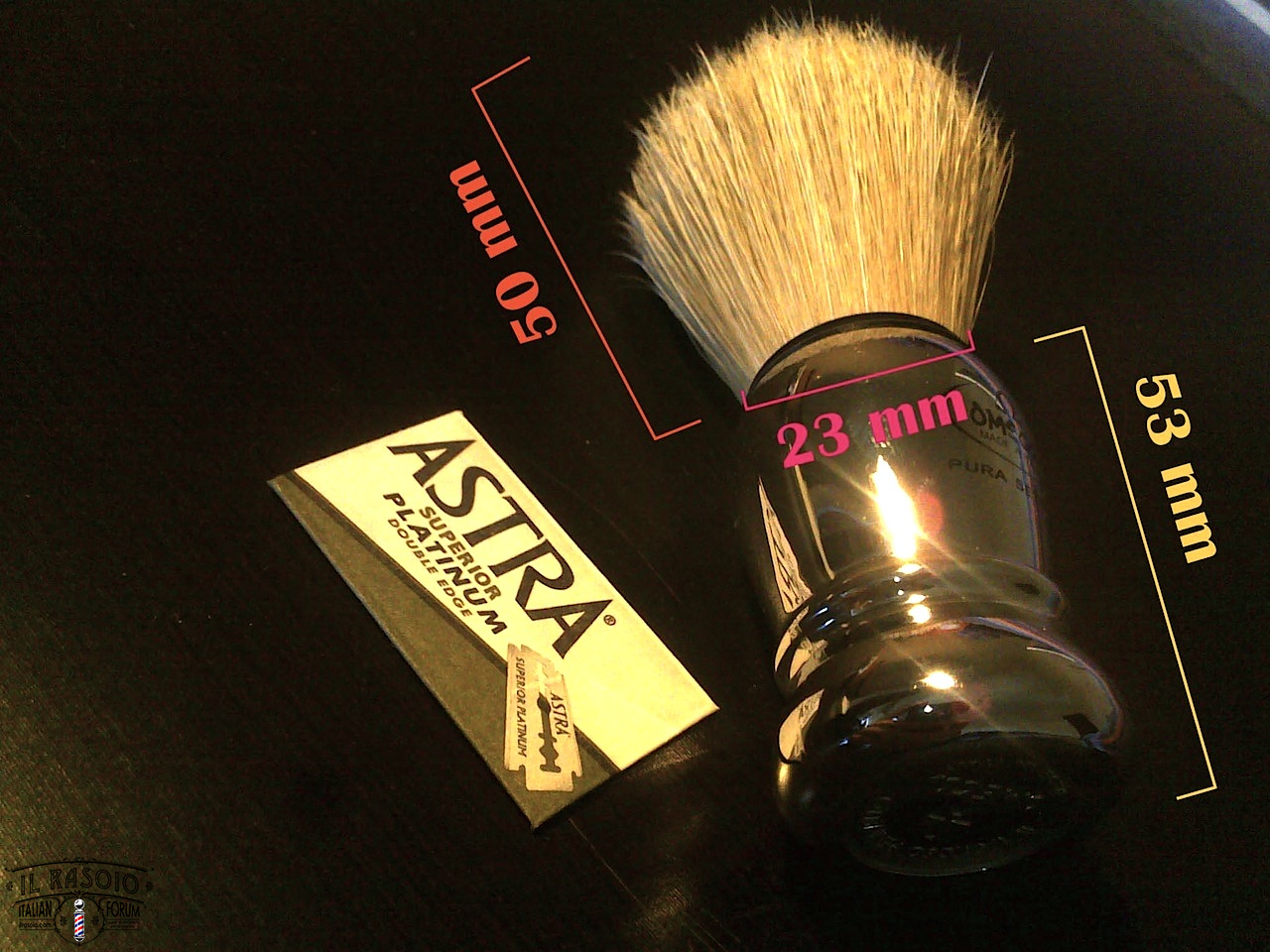 Le setole sono impacchettate bene, non presentano fastidiosi residui di colla e sono ben annodate: in fase di rodaggio perderà qualche pelo, per lo più spezzato piuttosto che sfilato dal nodo. Fan shaped.