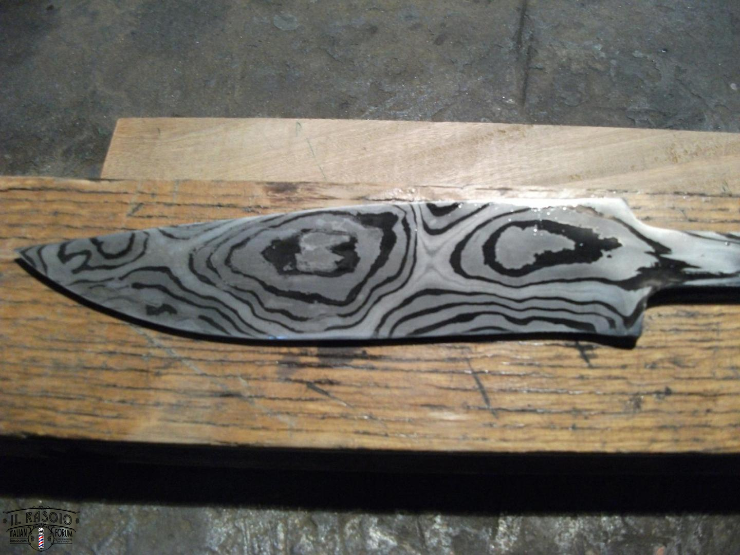 Il coltello nella foto è il risultato di una billetta schiacciata di testa quando ancora non conoscevo la tecnica del ladder pattern.In seguito spiegherò questa tecnica nelle sezioni apposite.