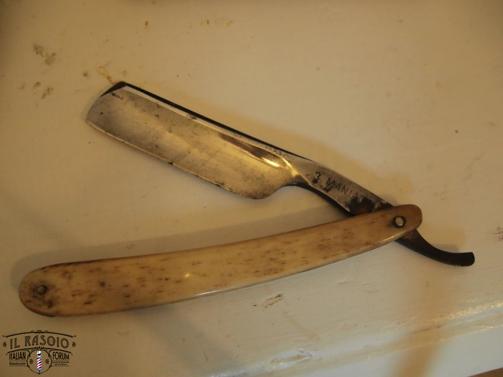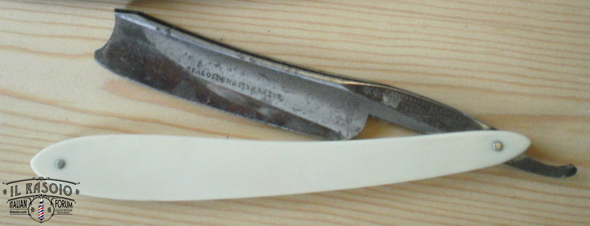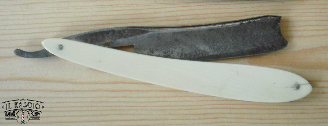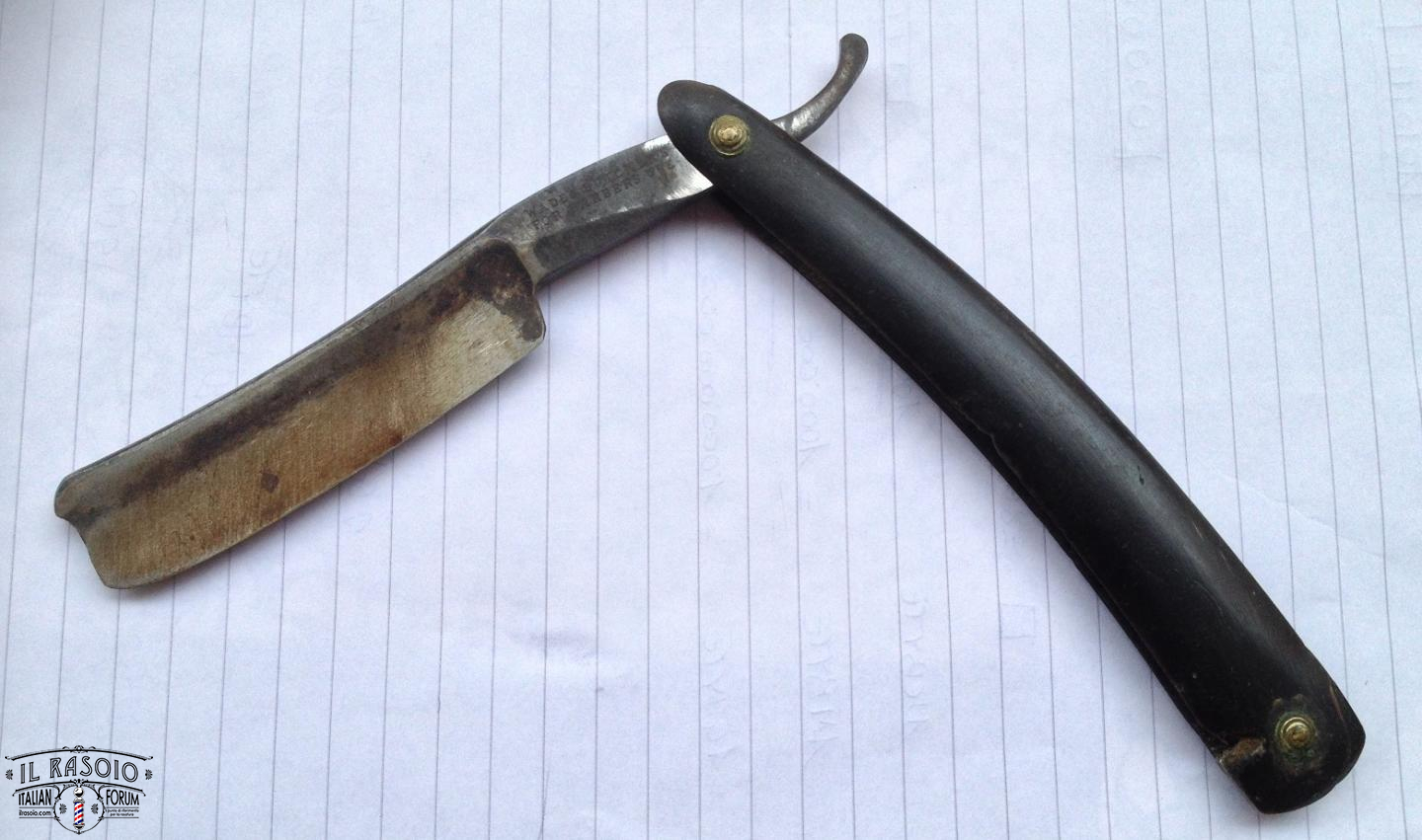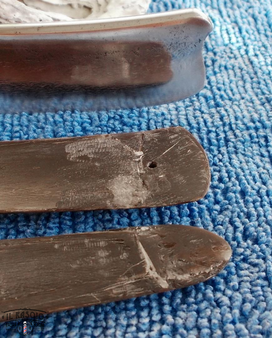 Probabilmente il rasoio era stato per lungo tempo coperto di grasso che però alla fine si era seccato permettendo l'inizio dell'ossidazione, fortunatamente non in maniera troppo grave, a parte il solito punto in corrispondenza del bordo delle guancette.