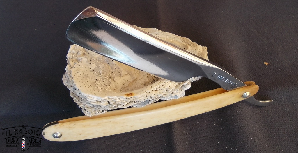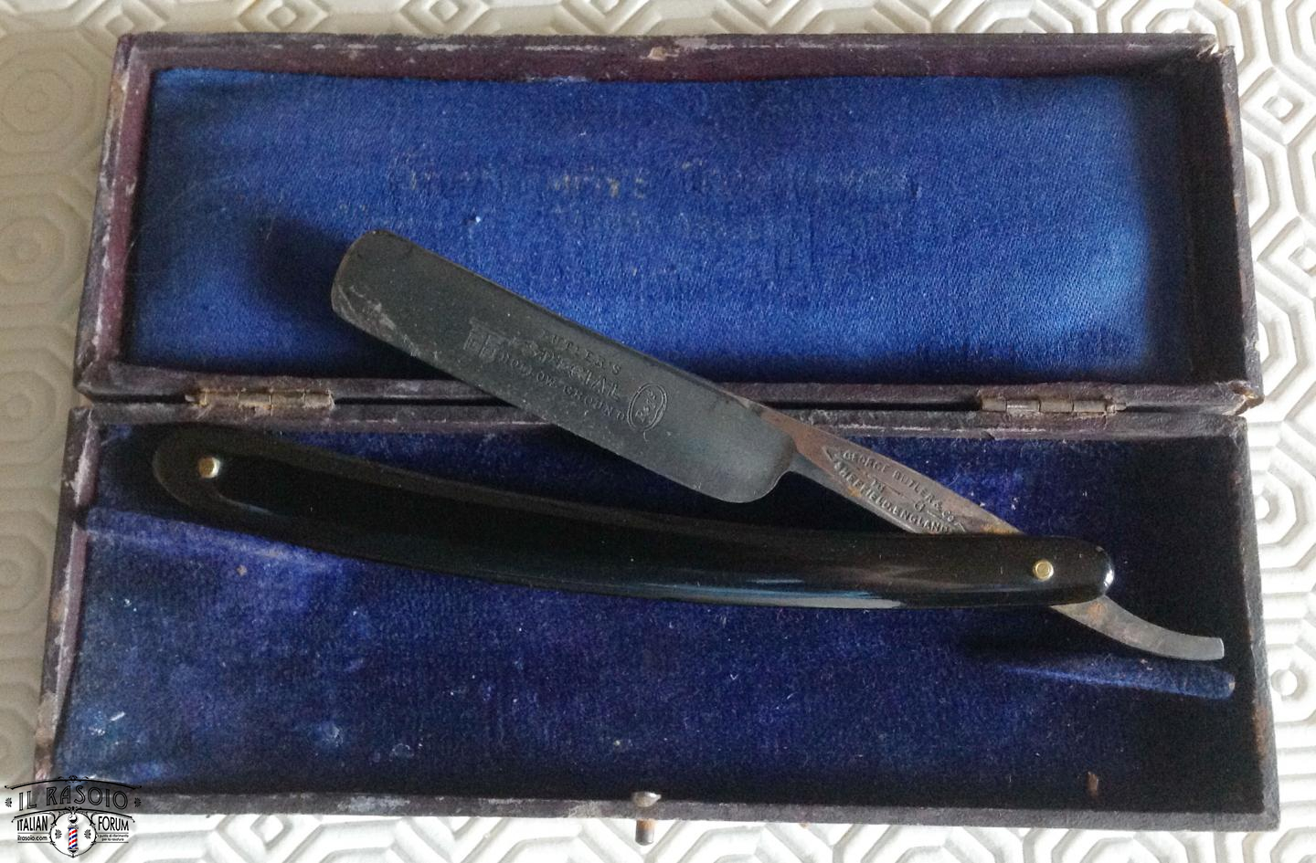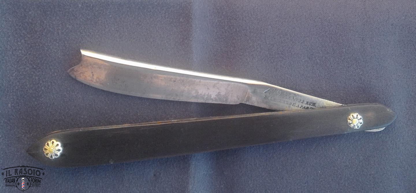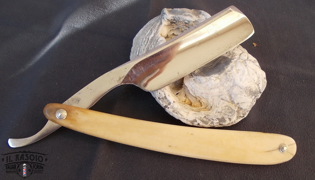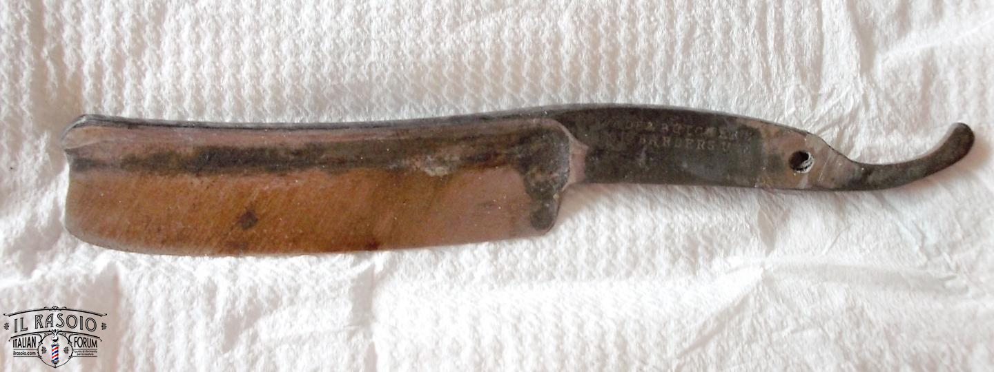 Probabilmente il rasoio era stato per lungo tempo coperto di grasso che però alla fine si era seccato permettendo l'inizio dell'ossidazione, fortunatamente non in maniera troppo grave, a parte il solito punto in corrispondenza del bordo delle guancette.
