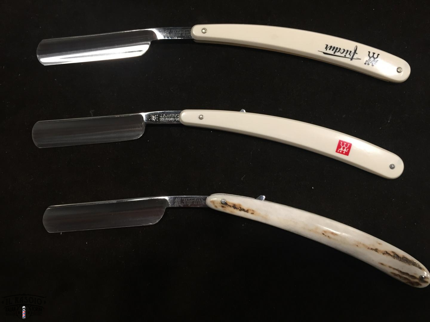 Il friodur e il manico cervo sono inox mentre quello con il simbolo in carbonio.