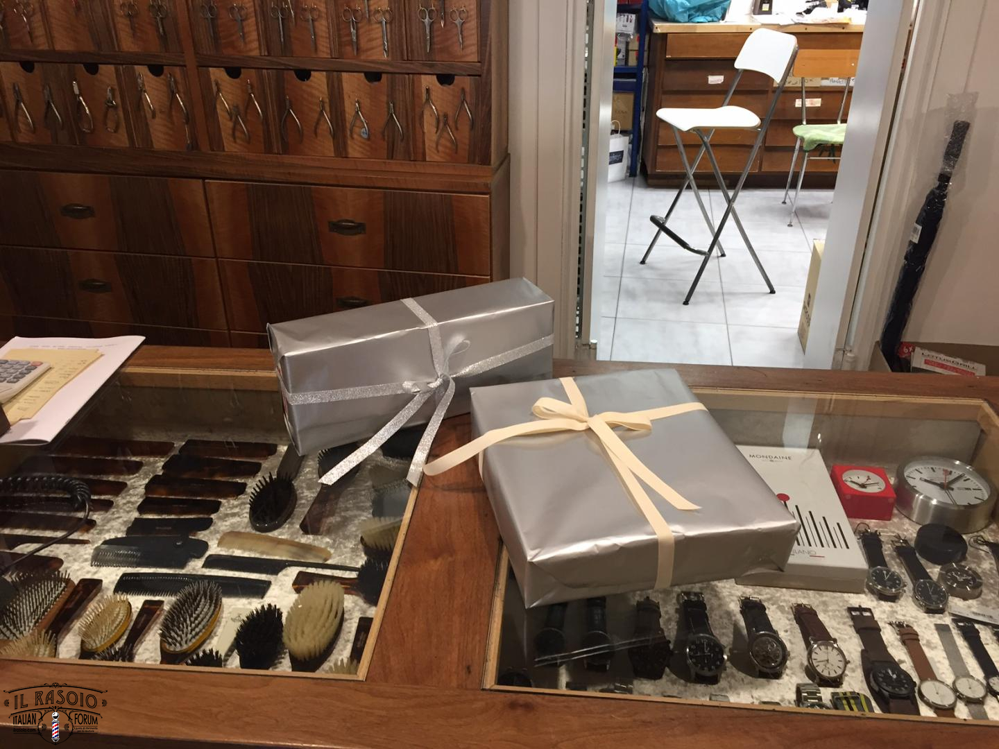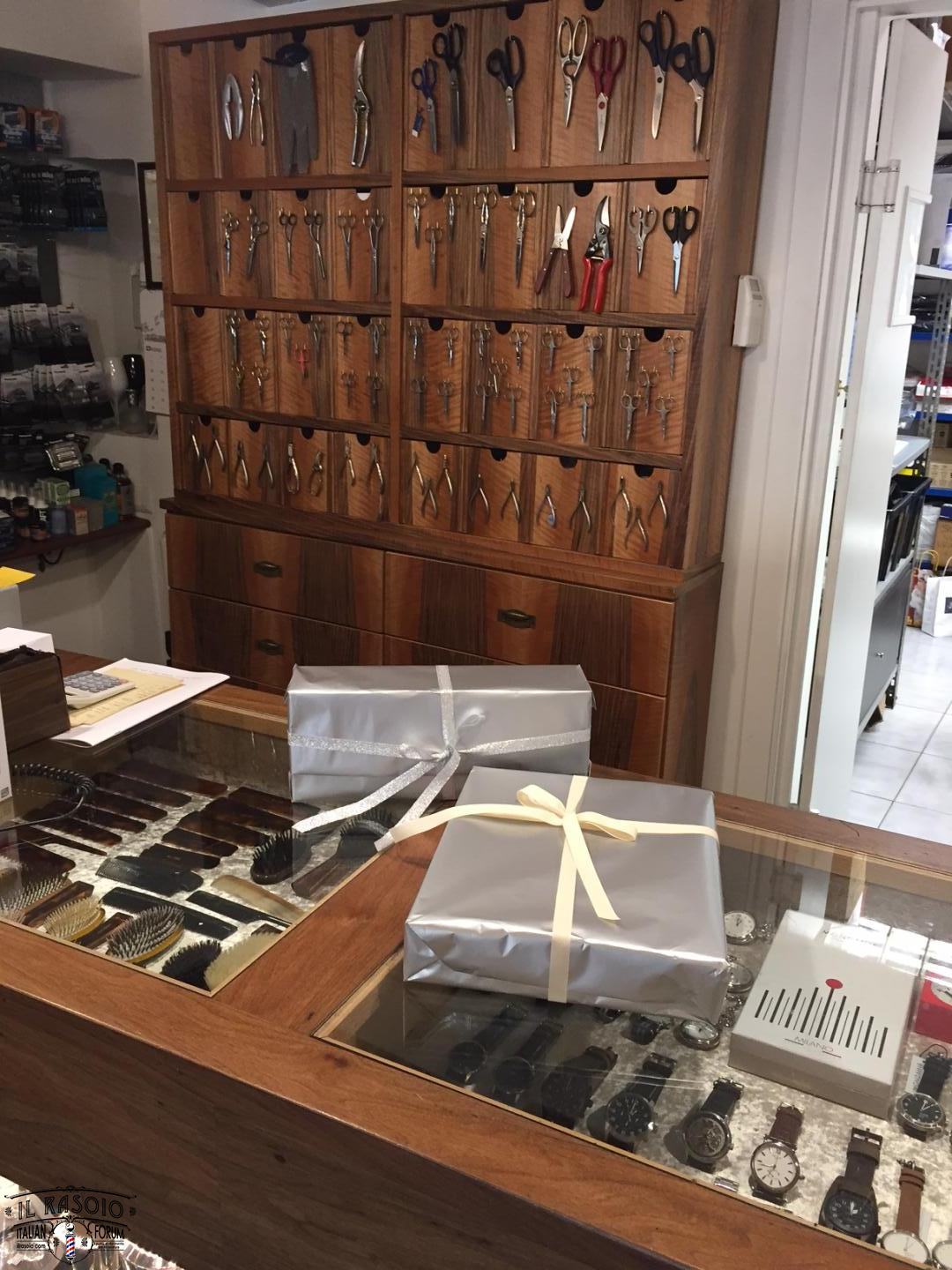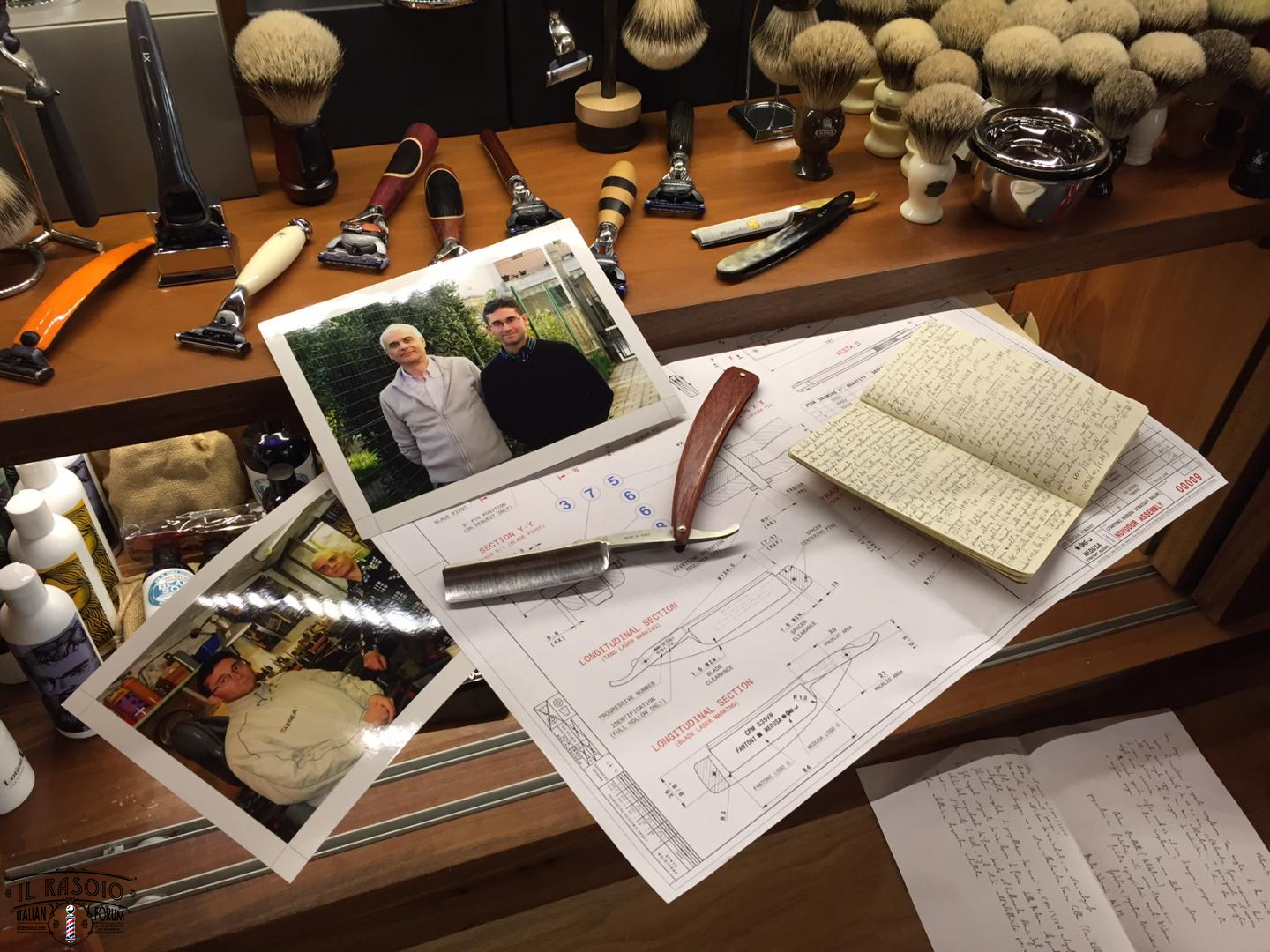 Questa persona ha desiderato anche una nostra foto autografata da me Franco (Franz Kleber) insieme al rasoio. Siamo stati molto felici di esaudire le richieste del cliente e di Andrea Rivola che è stato cosi gentile da scattare delle foto nel suo nuovo locale riguardanti il materiale da noi portato in dono.