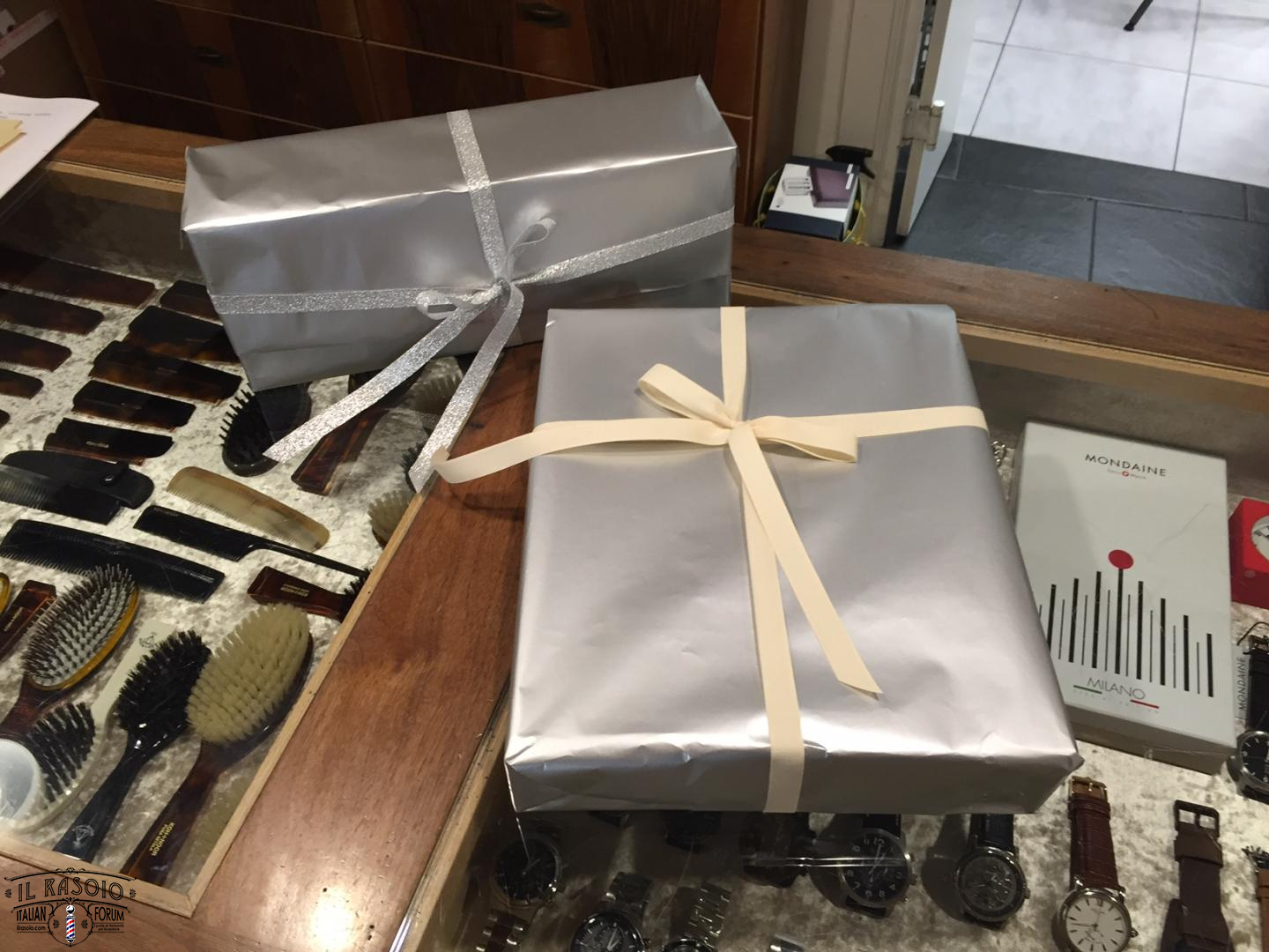 Due inaspettati e graditi regali dal nuovo proprietario di uno dei rasoi Medusa in CPMS35VN* in vendita presso la Coltelleria dell'arrotino Andrea Rivola. I regali sono per me e il Rivola per ringraziarci di aver spedito insieme al rasoio anche la foto autografata , i progetti e gli appunti sui metodi di costruzione dei nostri rasoi. Questo gesto da parte del cliente della rinomata coltelleria lo apprezziamo tantissimo; sono questi eventi che spingono il Duo Medusa e i Professionisti che collaborano con Noi e il Forum a dare sempre il massimo per realizzare prodotti artigianali unici. Il signore che ci ha donato questi due regali, e che ringraziamo tantissimo, in questo modo ci ha dimostrato di essere una persona che apprezza la differenza tra un prodotto commerciale e uno strumento dietro al quale invece vi è ricerca, sperimentazione, voglia di mettersi in gioco e di raccontare quindi con passione tutte le vicissitudini che hanno portato alla realizzazione dell'oggetto.