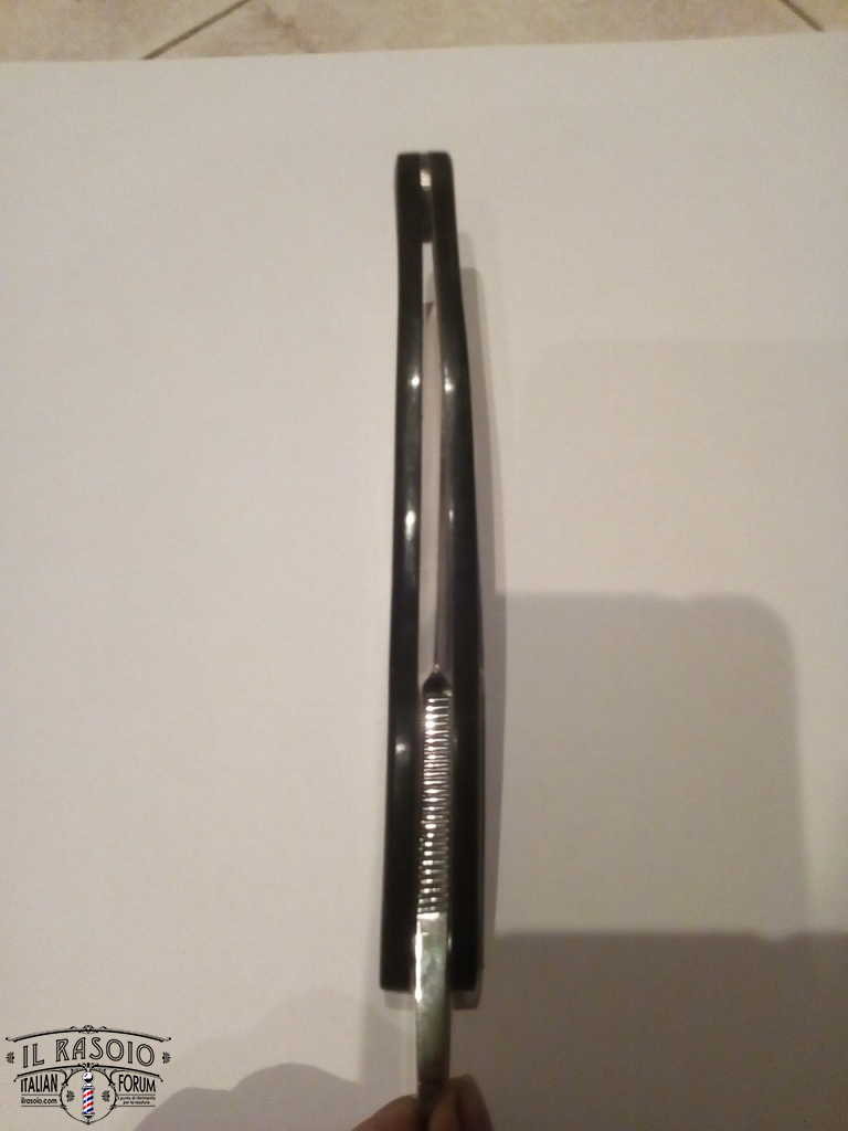 In seguito a lappature si evidenziano difetti geometrici evidenti su tutta la lama che ne rendono impossibile l'affilatura, manico e parti di manico facilmente cedevoli. Ritenuto pericoloso l'utilizzo per la rasatura.
