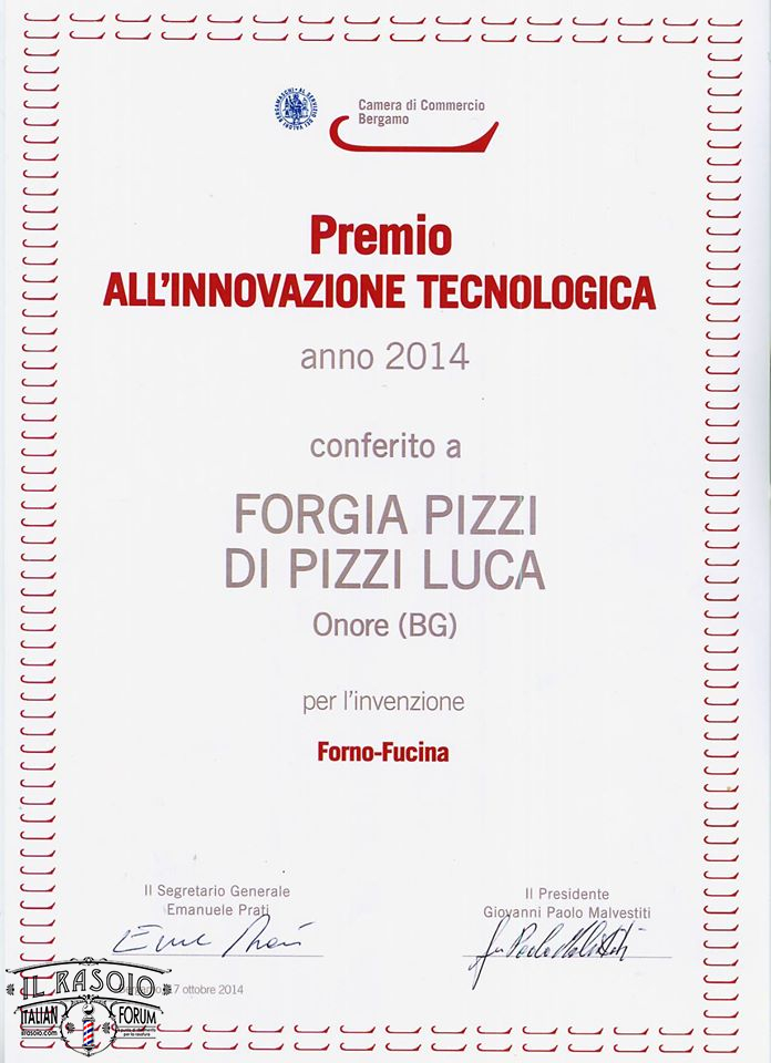 Il Maestro Luca Pizzi è stato il primo al mondo a forgiare del Damasco in inox,prima ottenibile soltanto tramite metallurgia delle polveri industrialmente.