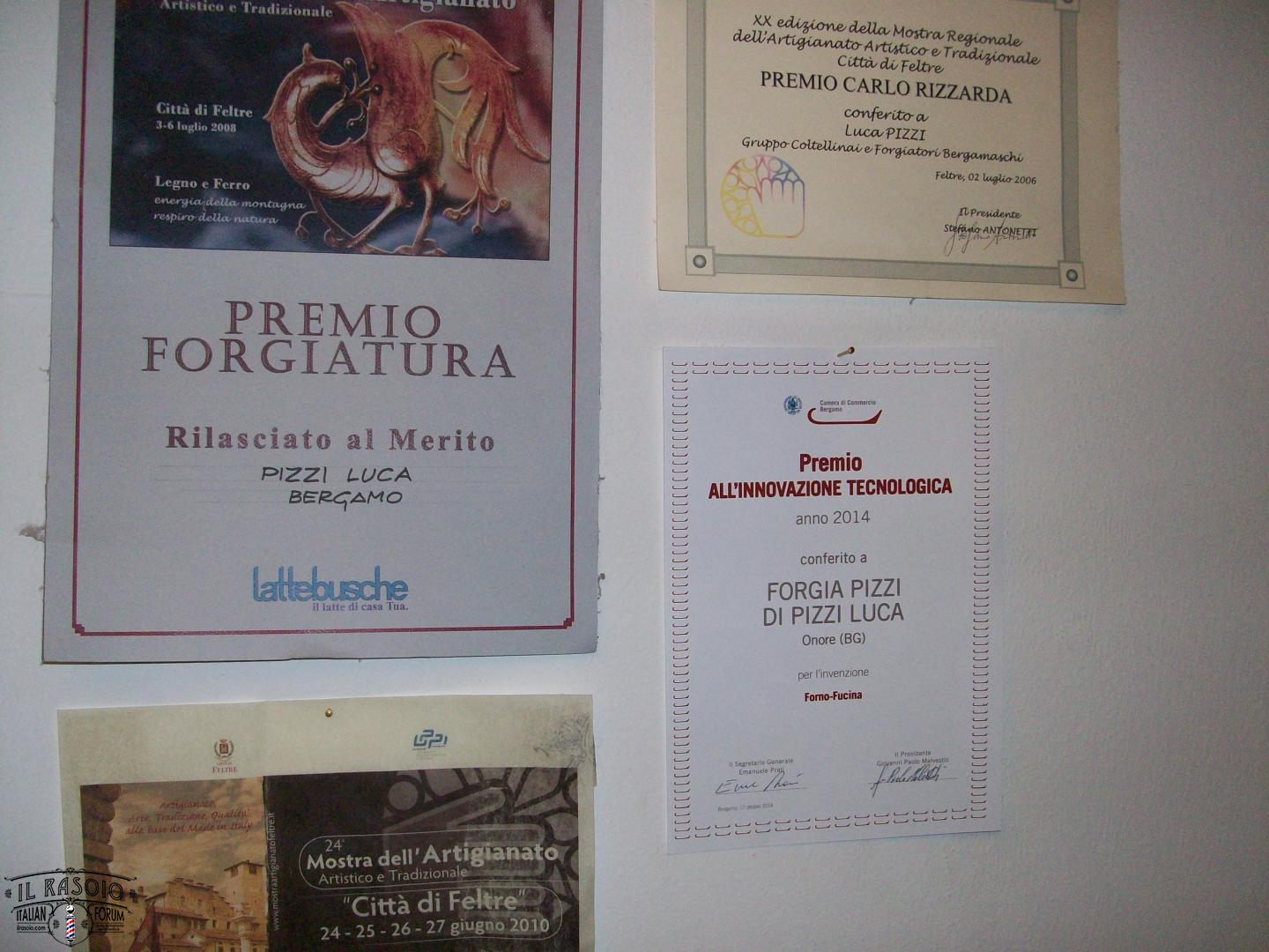 24-25-26-27 giugnio2010 conseguito il PREMIO CARLO RIZZARDA TERZO CLASSIFICATO Pizzi Luca per la realizzazione di un coltello bergamasco in damasco inox