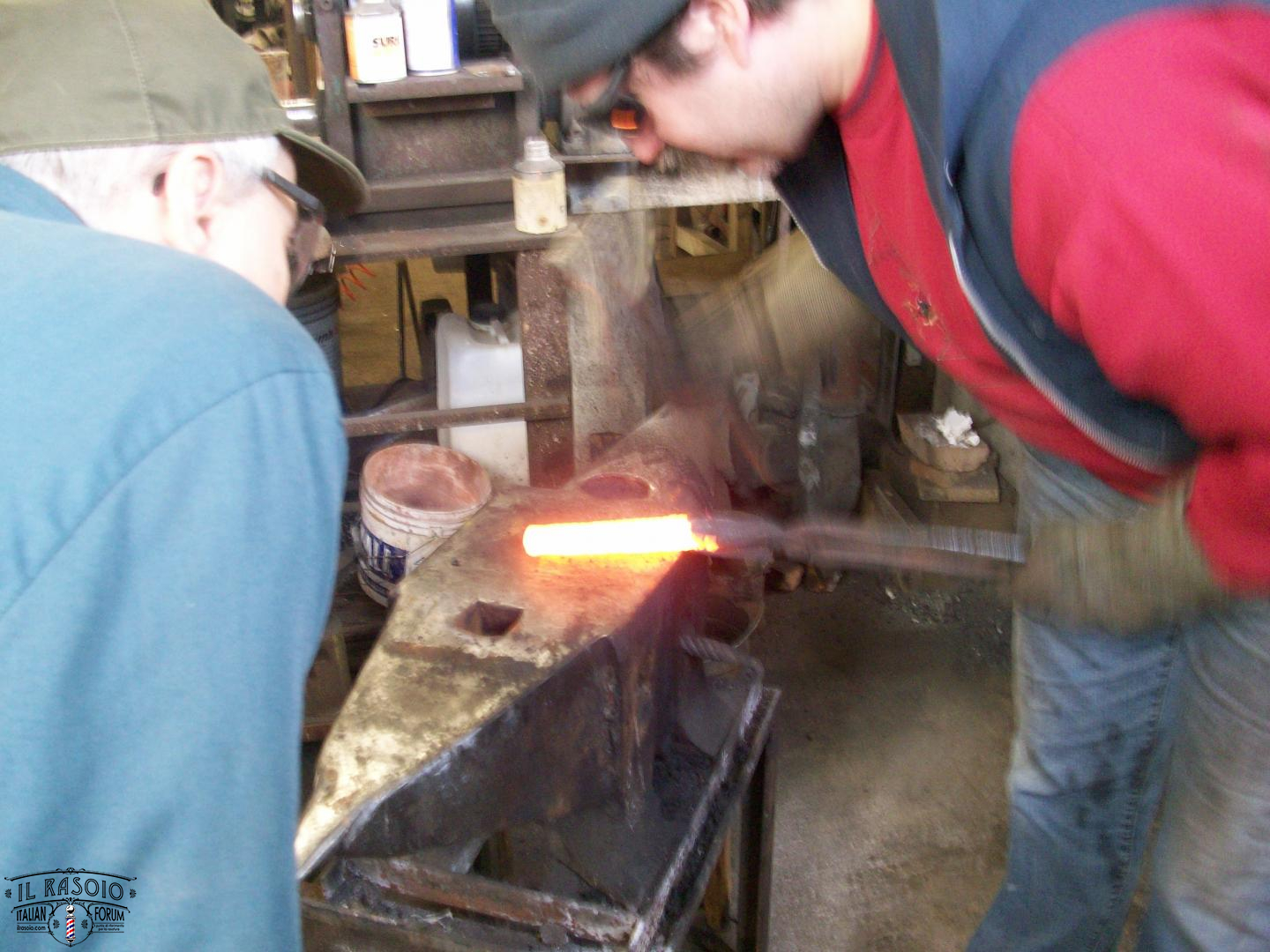 Come scrivevo prima,ho voluto puntualizzare che io e Franz andremo a forgiare del Damasco presso la sua Bottega,come quando siamo stati da Camillo Silvano,suo Maestro*.In realtà,come già scritto,Luca Pizzi ha costruito e costruisce ogni genere di tagliente,e nessun sommario potrebbe esporre nel loro giusto valore i suoi contributi,numerosi e sempre orginali,nel campo della coltelleria.Egli ha brevettato anche un tipo di forno per i trattamenti termici.