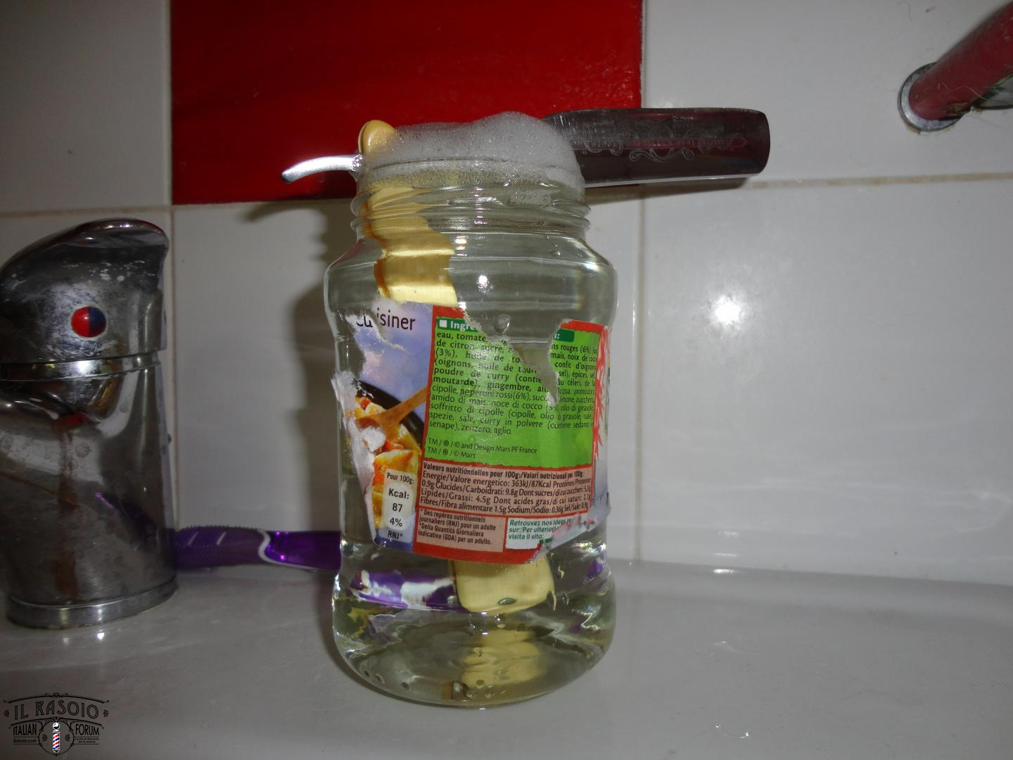 Devi mettere in bagno solo la lama lasciando fuori il manico, il contrario di quello che vedi nella foto