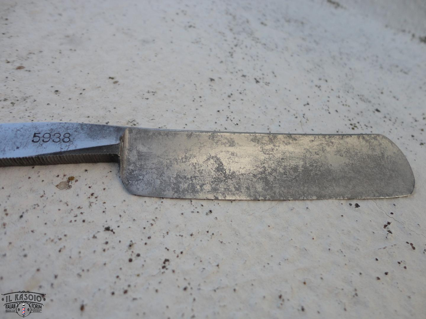 Così come lo vedi il rasoio è solido e con la zona del tagliente abbastanza integra.