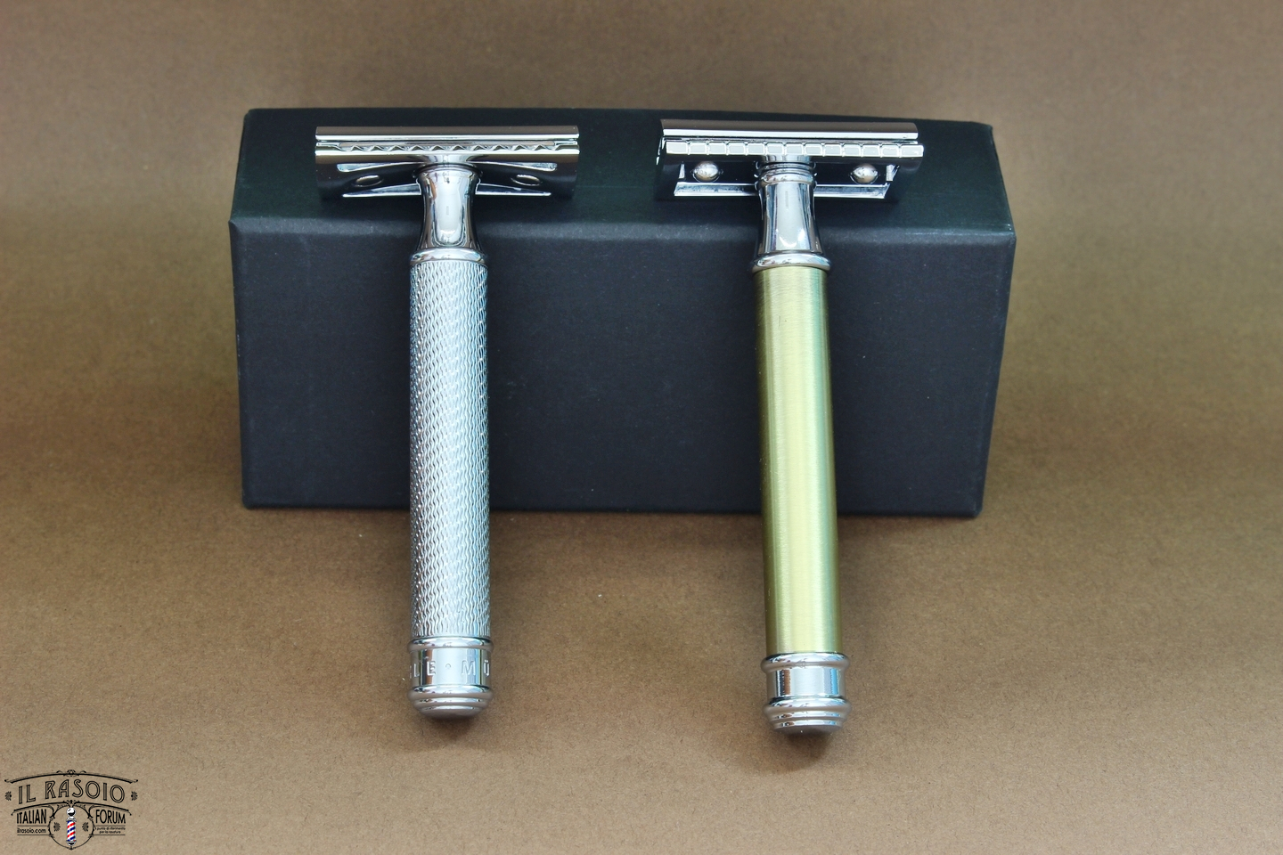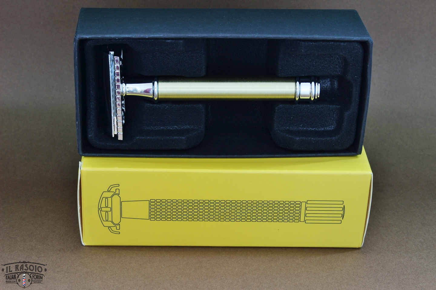 Rasoio tre pezzi che richiama la linea dei classici Muhle/Edwin Jagger ma con la ormai nota testina più aggressiva ma decisamente confortevole. L'impugnatura è in ottone e anche in questo caso le finiture sono di ottimo livello.