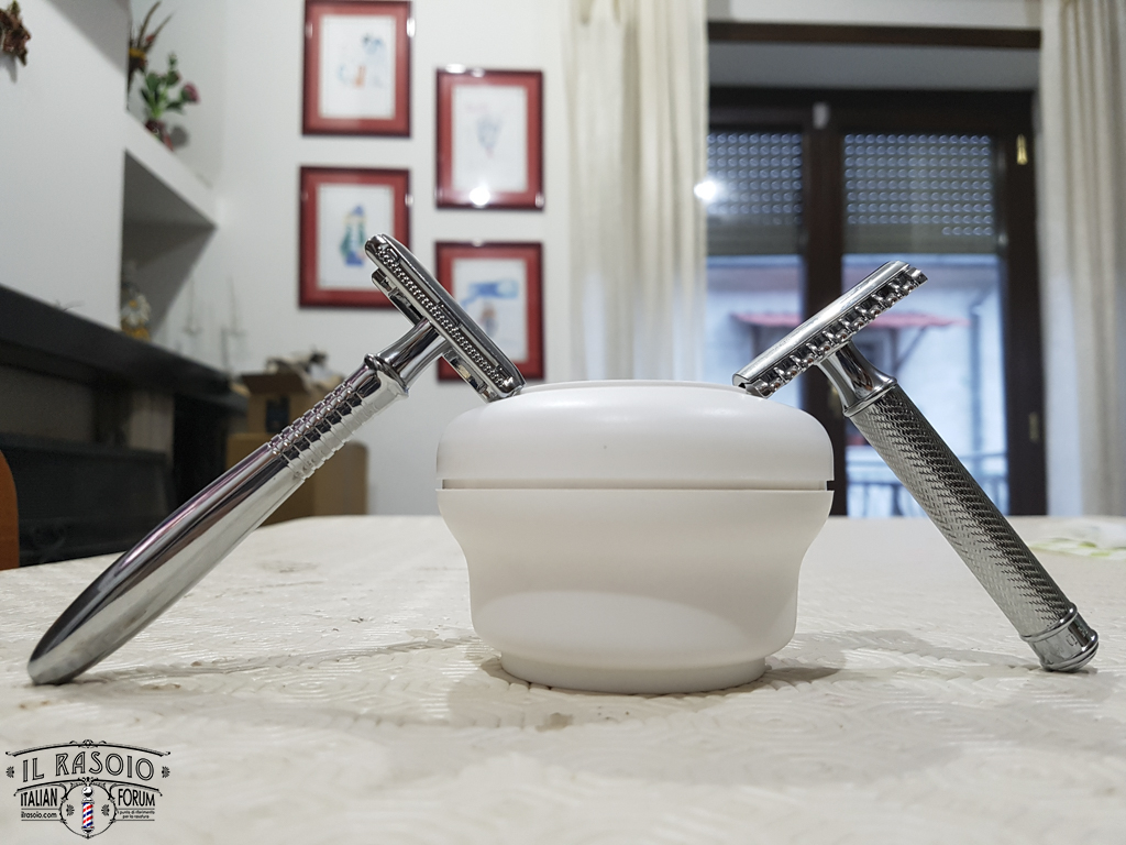 E' un rasoio ben bilanciato (anche per il manico cavo che non lo appesantisce troppo) e molto, molto efficace senza eccessi di aggressività.
